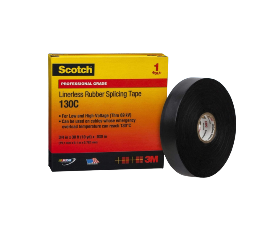 La cinta 130C de Scotch® es una cinta de hule para empalmes sin revestimiento de primera calidad, tiene 30 mil. de espesor, es utilizada para empalmar y terminar cables y alambres. Soporta temperaturas de hasta 194 ° F (90 ° C) con sobrecarga de emergencia de hasta 266 ° F (130 ° C). La cinta tiene excelentes propiedades eléctricas y mecánicas para proporcionar protección contra la humedad.