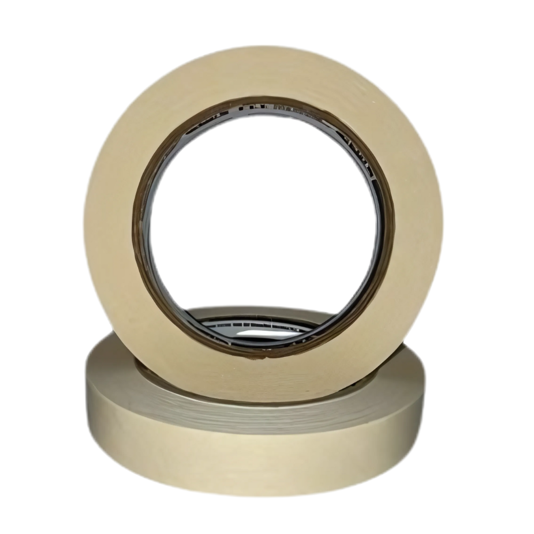 Cinta de papel crepado con adhesivo de hule-resina sensible a la presión. Ofrece alta adhesión, buena flexibilidad y resistencia, ideal para aplicaciones industriales generales.