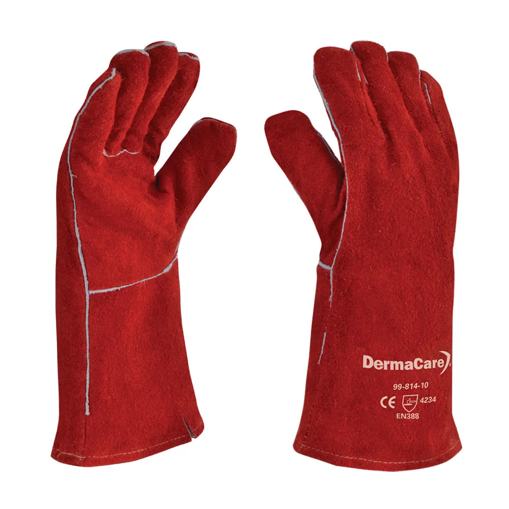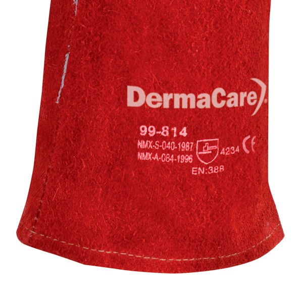 Guante de carnaza de res rojo, hilo Kevlar y puño recto 14” pulgadas. Guante para soldador en carnaza de res curtida al cromo y doble engrase, tratado en base de aceites para mayor duración y flexibilidad, 14” pulgadas de largo, diseño tipo americano, con forro interior acojinado. Costuras ribeteadas lo que permite que el uso de este guante sea más cómodo, brindando alta durabilidad y confort. Cosido con hilo Kevlar (fibra aramida), que le da mayor tiempo de vida útil al guante.